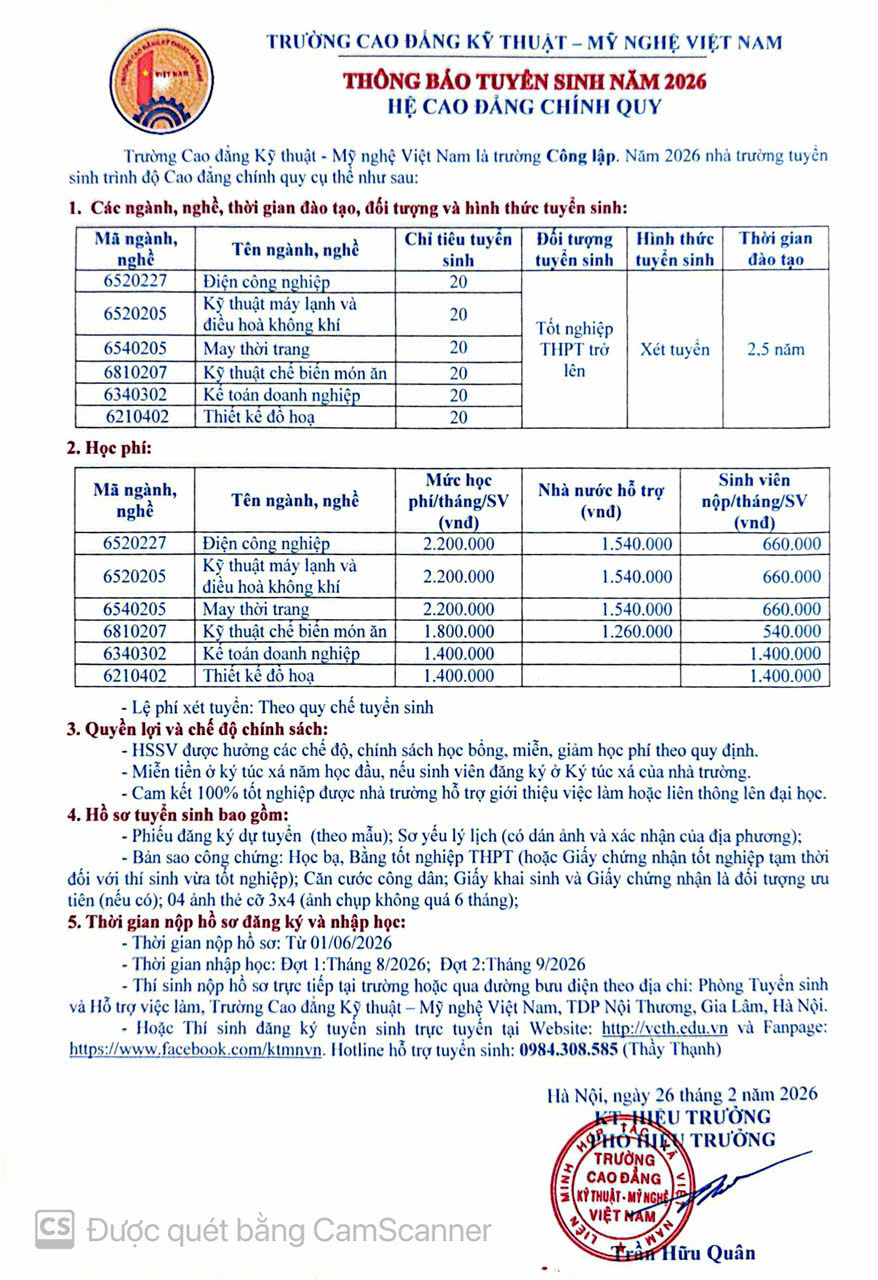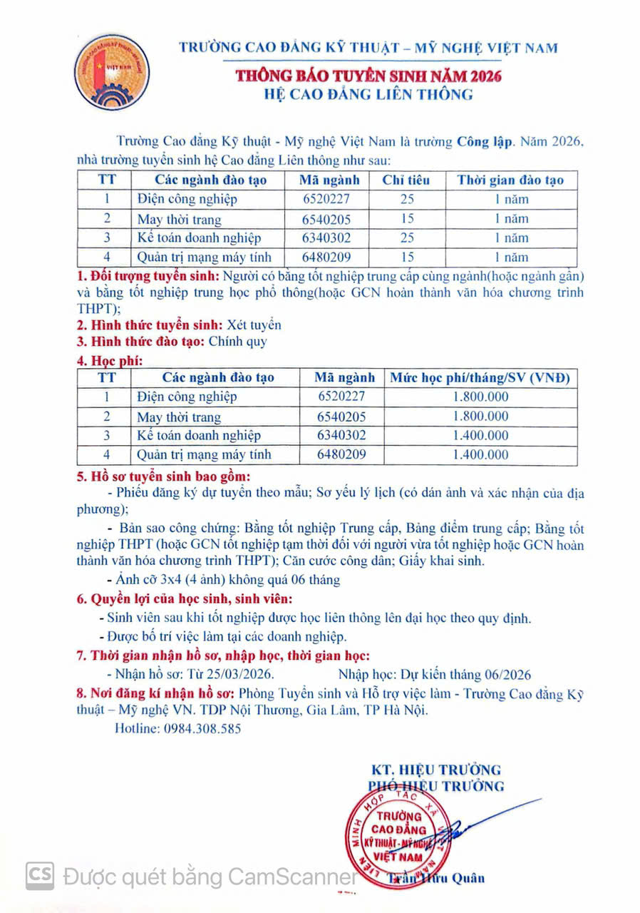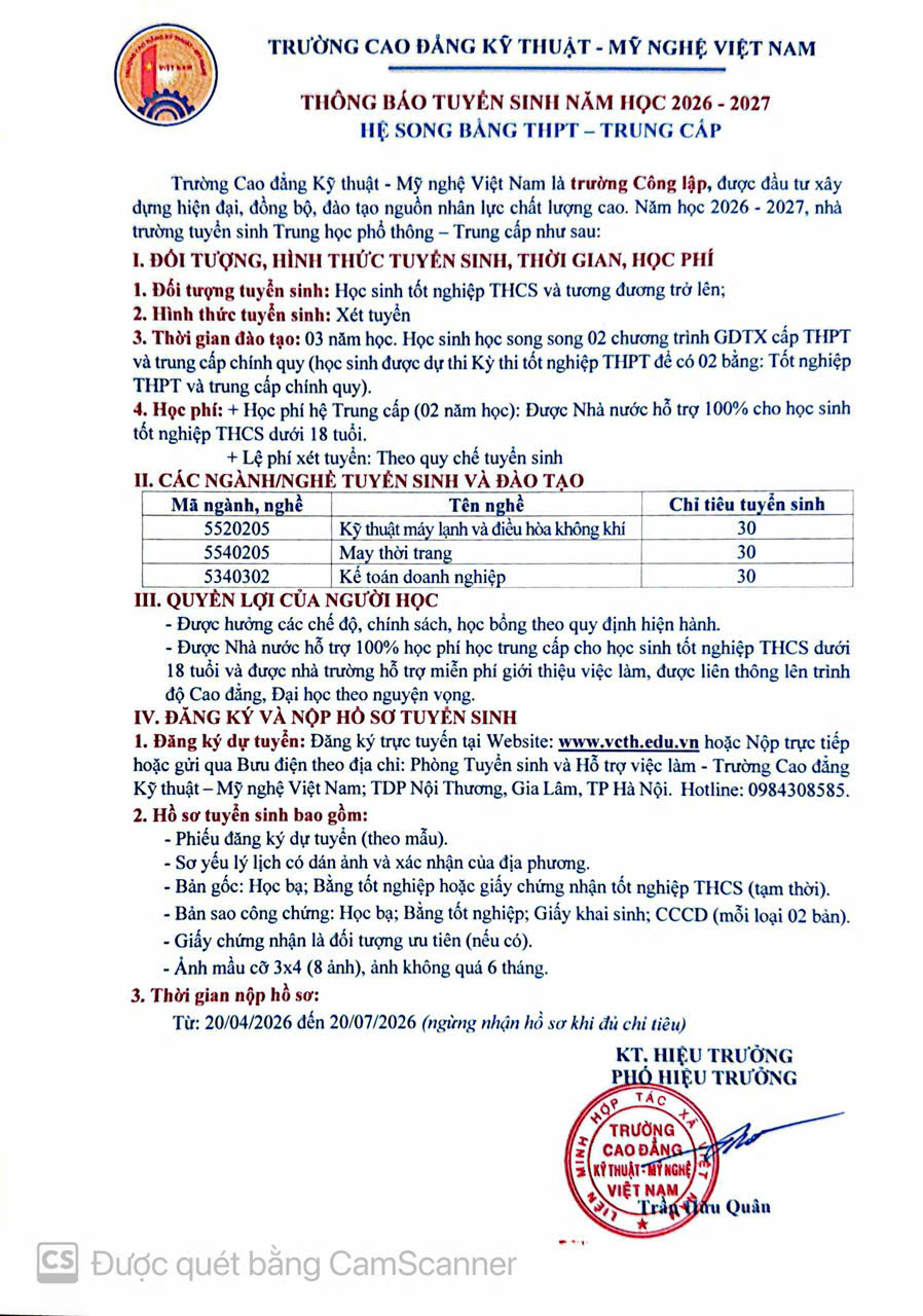 THÔNG BÁO TUYỂN SINH NĂM 2026